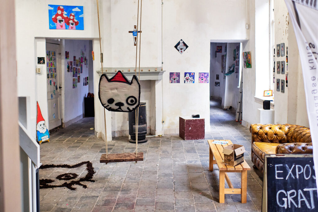 Zo is onder andere het werk van Straatkabouter en Verfvandaal te zien. ‘De straatkabouter is misschien wel de meest beruchte straatkunstenaar van Zwolle. En daar waar kabouters zijn, zijn ook paddenstoelen! Verfvandaal is een zeer fanatieke stickerplakker en laat graag zien dat hij er geweest is. Deze 2 kunstenaars nemen je graag mee in hun tuin waarbij je door hoog gras moet lopen, uit moet kijken voor modder en zeker niet ruzie moet maken met de tuinkat!’